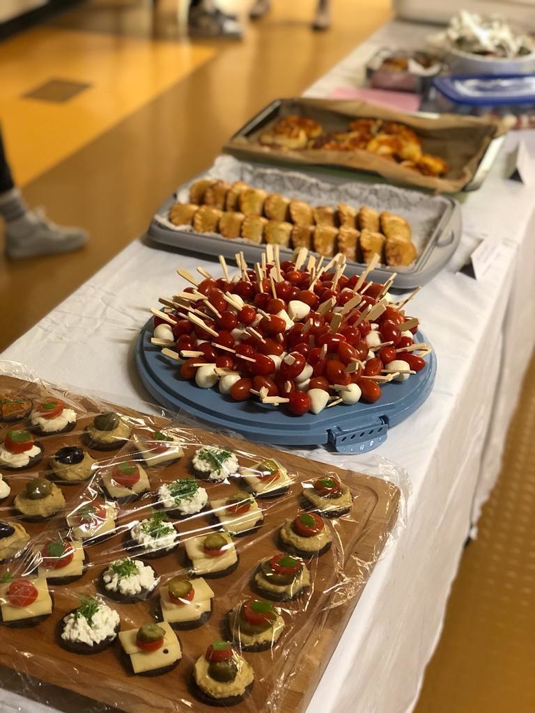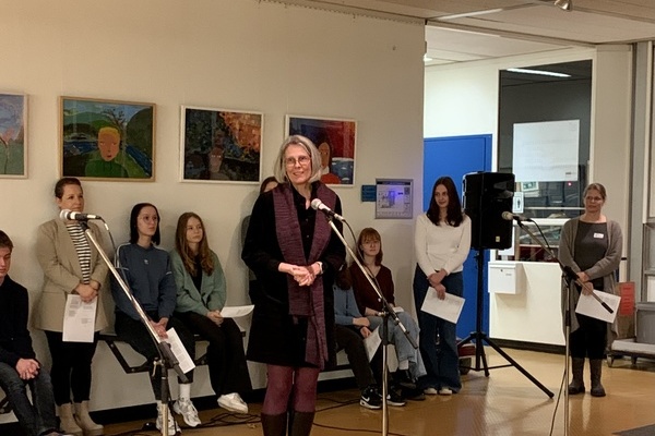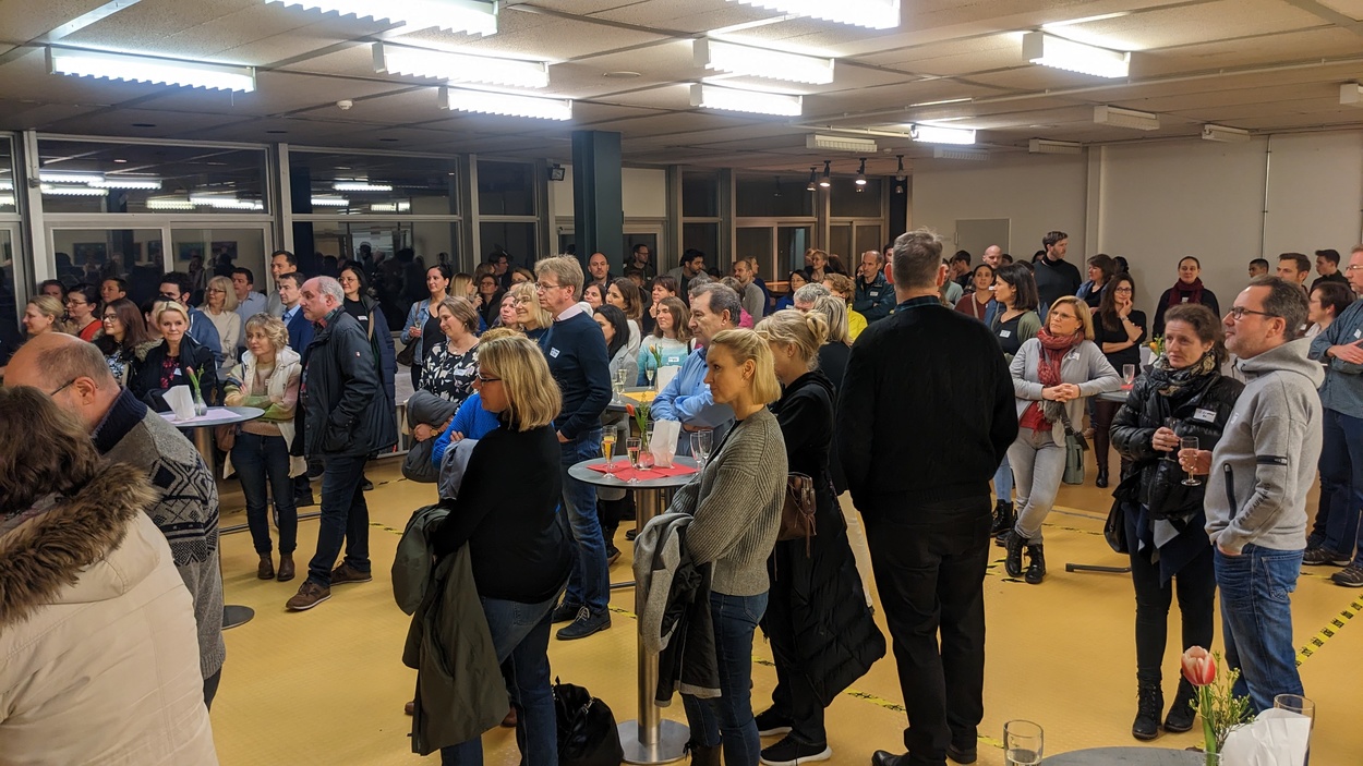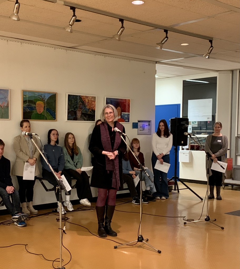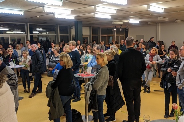 Musikalisch eröffnet wurde die Veranstaltung vom Lehrer-Schüler-Chor. Anschließend wurden die ca. 140 Anwesenden von Gaby Borchard, der Vorsitzenden des Elternbeirats, und Isabelle Ferrari, der Schulleiterin, willkommen geheißen. Nach der Begrüßung und einem zweiten Chor-Stück hatten Lehrer*innen und Eltern in der Aula die Gelegenheit, gemeinsam auf das neue Jahr anzustoßen und in lockerer Atmosphäre miteinander ins Gespräch zu kommen.