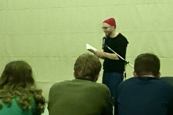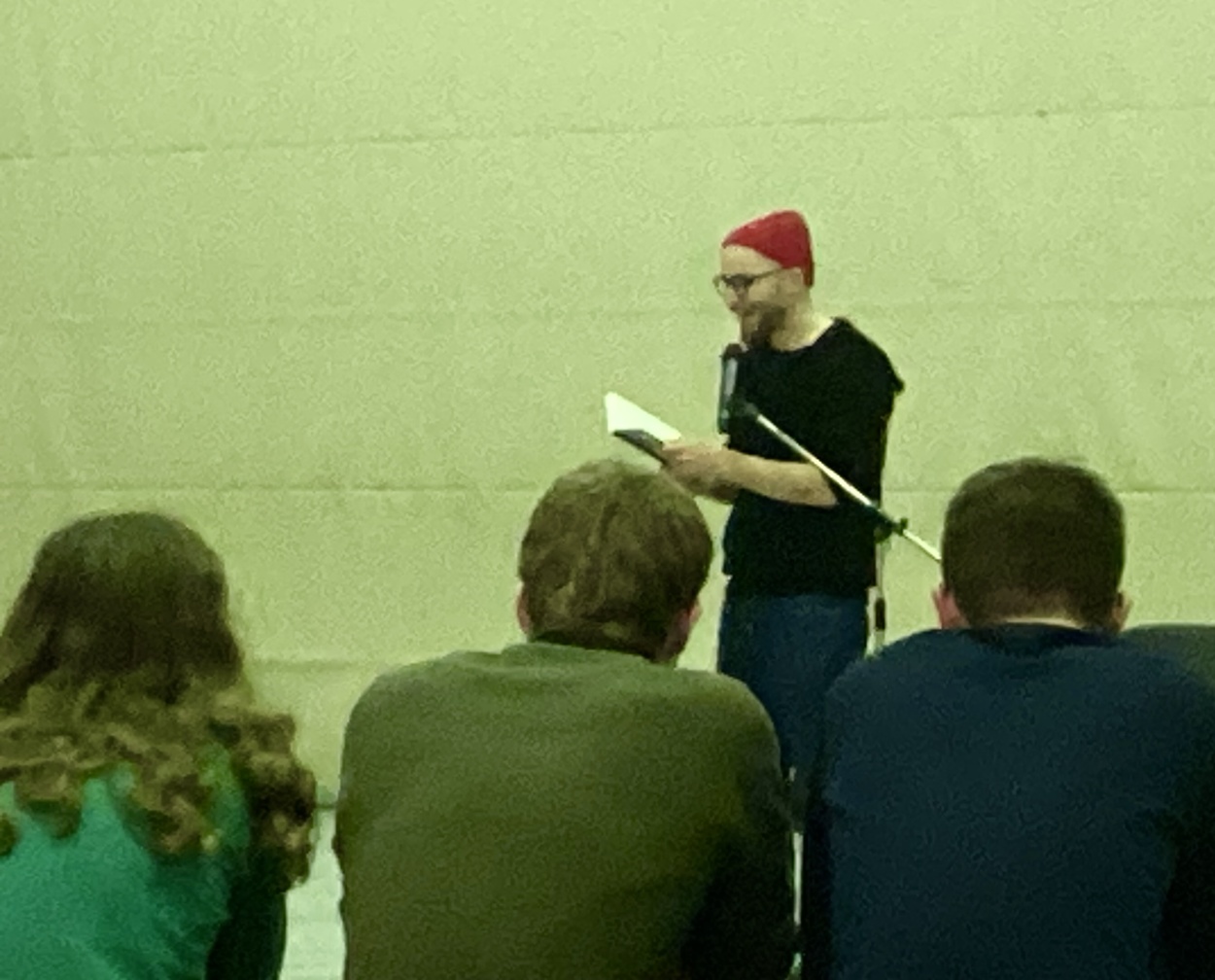 Der deutsche Autor und Filmemacher aus Berlin gab am Mittwoch, dem 13. Dezember, in Hemsbach eine Auswahl seiner Kurzgeschichten zum Besten. So wurden die Jugendlichen mit Henning konfrontiert, dem Protagonisten aus der Kurzgeschichte “Machst du bitte mit, Henning”, einem gewalttätigen Jungen aus dem Haus Hirte Heim für gestörte Kinder. Er sprengt die Weihnachtsfeier des Heims mit einem krassen Geheimnis und pfeift auf das versprochene Geschenk.