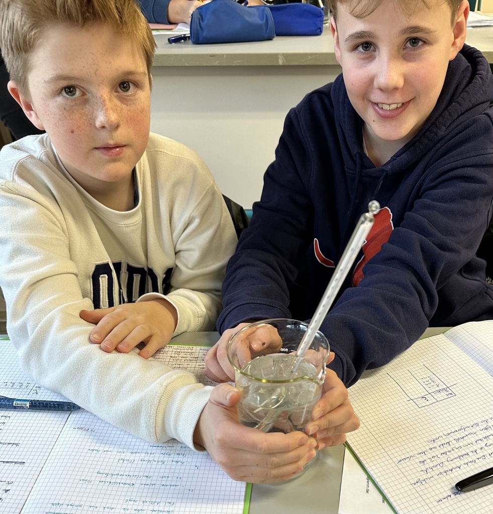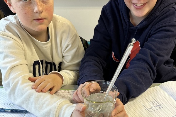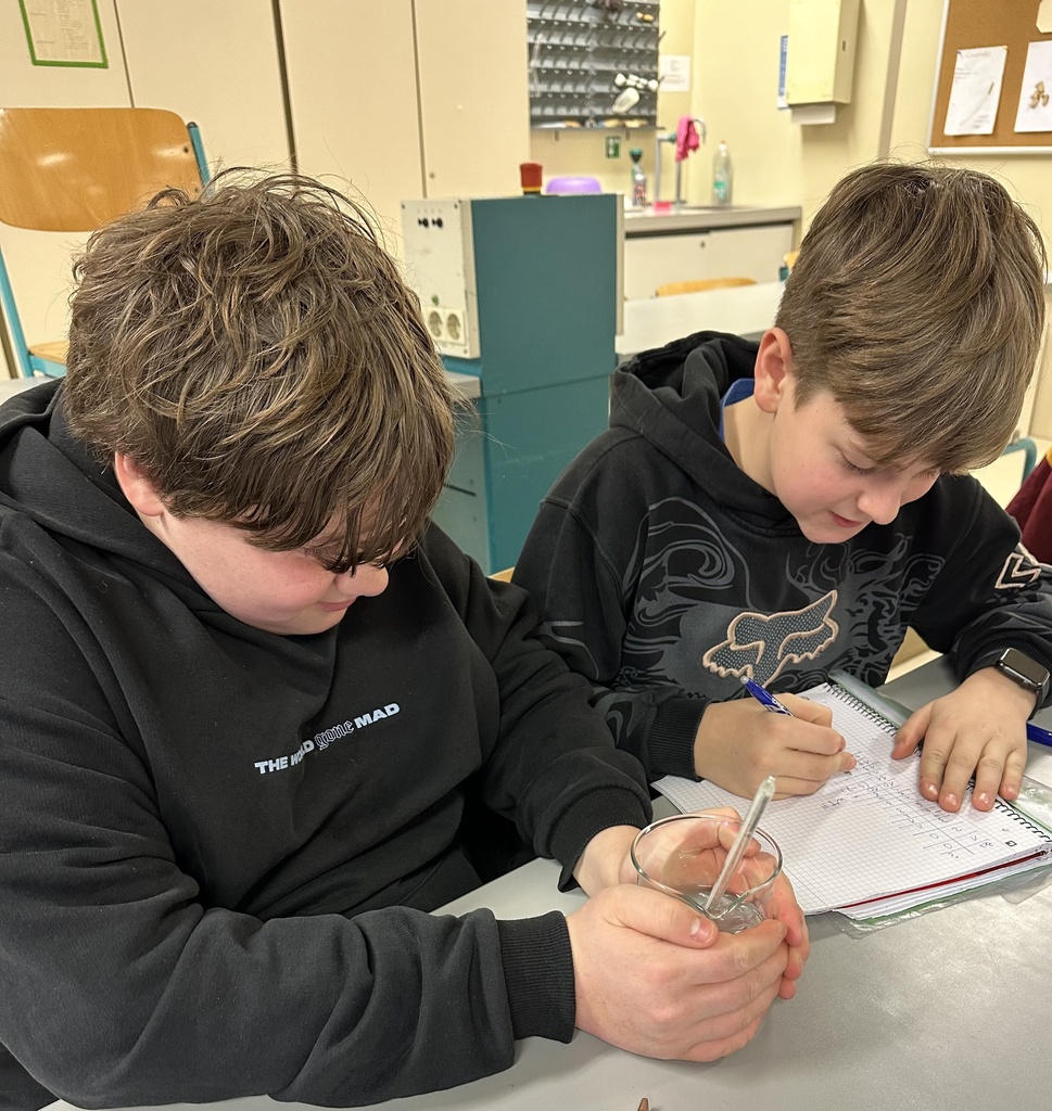 Doch auch während der Winterstarre kann es gefährlich werden. Wenn die Tiere aufgeweckt werden, verbrauchen sie viel Energie. Fallen die Tiere anschließend wieder in Winterstarre, kann eine erneute Störung tödlich enden, da nicht mehr genügend Energie vorhanden ist. Wie viel Energie nötig ist, um die Temperatur zu erhöhen bzw., bezogen auf die Amphibien, um wach zu werden, haben Schüler*innen der 6. Klassen im Praktikum getestet. Bei diesem Praktikum wurden Eiswürfel in ein Becherglas gegeben und mit Wasser übergossen. Dieses Gemisch aus Eiswürfeln und Wasser sollte nun um 5 °C erhöht werden, und zwar mit Hilfe der Körperwärme. Die Schüler*innen versuchten, mit ihren Händen an dem Becherglas die Temperatur zu erhöhen, dokumentierten die gemessenen Daten und erstellten zur Veranschaulichung und Auswertung der Daten ein Diagramm. Der Versuch war sehr eindrücklich und interessant. „Das dauert aber ganz schön lange“ stellte ein Schüler fest, nachdem er und sein Mitschüler das Becherglas ca. 11 Minuten abwechselnd mit ihren Händen wärmen mussten, bis die gewünschte Temperaturerhöhung erreicht wurde. Auch eine Mitschülerin kam zu dem Schluss, dass die Störung der Winterstarre „für die Frösche ja total anstrengend sein muss“.