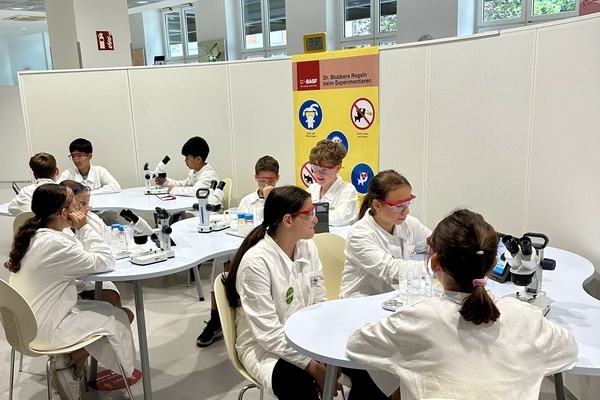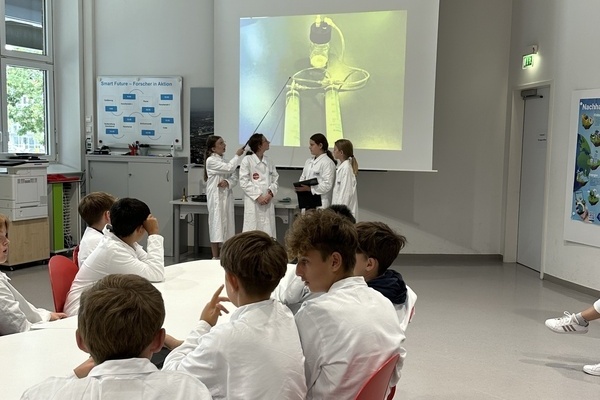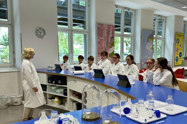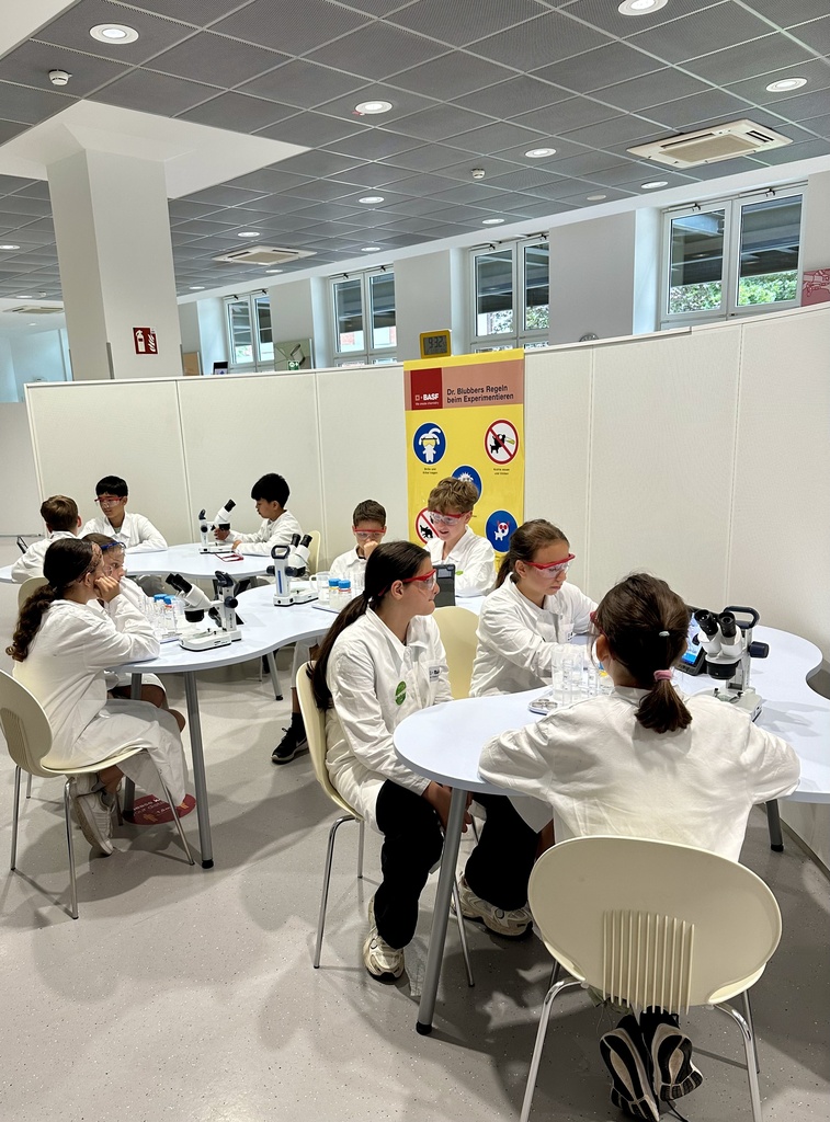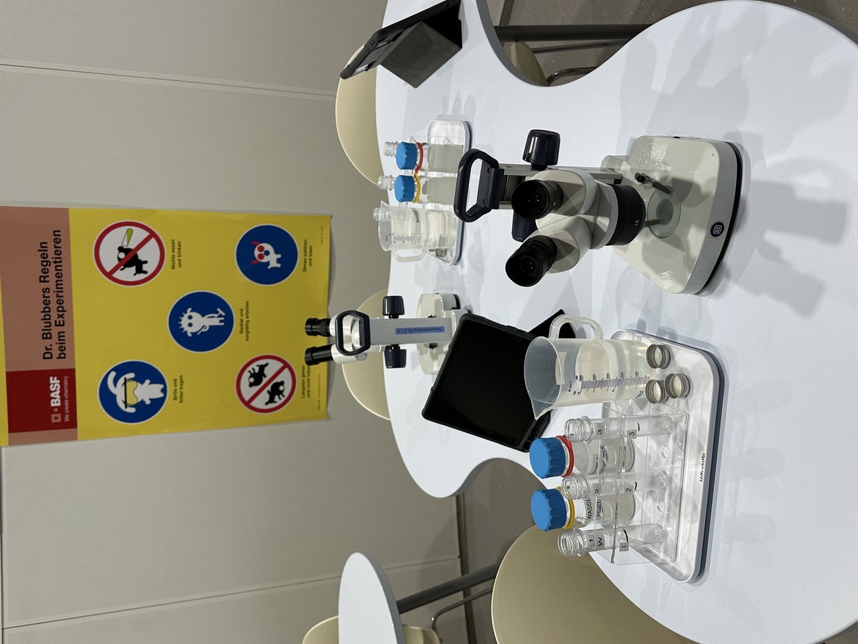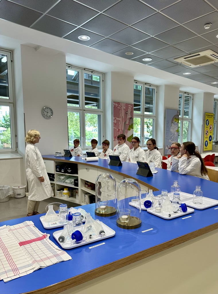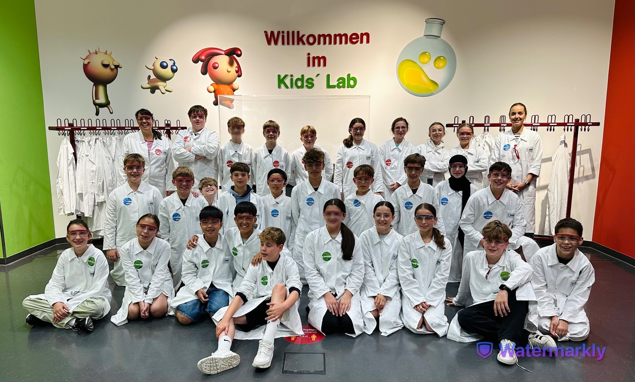 Am 12.07. besuchte die Klasse 6c, begleitet von ihren Lehrerinnen Frau Ehrhard und Frau Stauffert, im Rahmen des BNT-Unterricht das Kid`s lab der BASF in Ludwigshafen. Hier nahm die Klasse an dem Workshop Smart future teil. Bei diesem Workshop erhalten die Schüler*innen zu Beginn eine halbstündige thematische Einführung und führen danach in Kleingruppen Experimente durch.