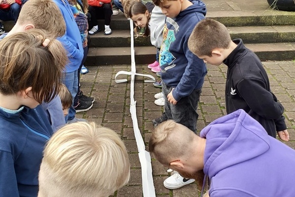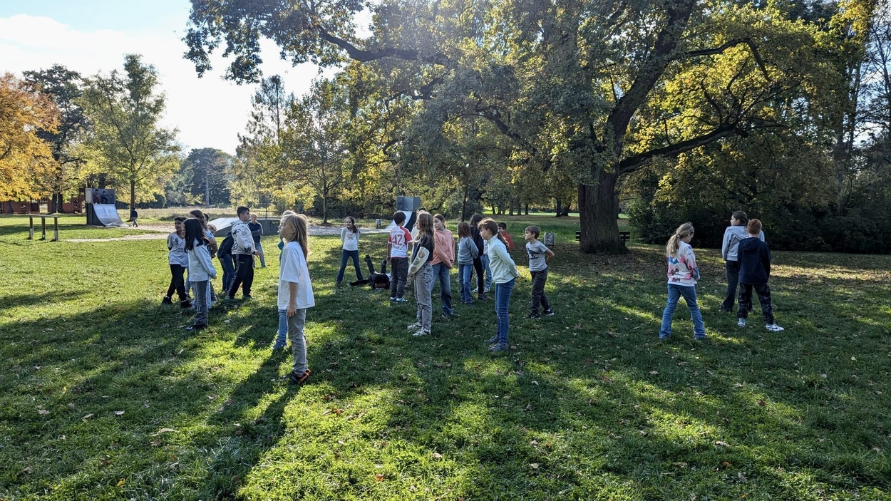 Ihre Teamfähigkeit trainierte die 5c als ganze Klasse außerdem mithilfe des Spiels ‚Wo ist Elsa?‘, bei dem man ein Gummitier namens Elsa vom weit entfernt stehenden Spielleiter stehlen und heimlich durch die Hände möglichst vieler Kinder zurück zur Startlinie bringen muss. Erschwert wird das Ganze dadurch, dass man sich nur bewegen darf, wenn der Spielleiter sich wegdreht, und dass dieser einmal pro Runde raten darf, wer Elsa gerade hinter seinem Rücken versteckt. Hier führten also Alleingänge nicht zum Klassen-Erfolg, sondern es waren gute Absprachen und Teamwork gefragt, wenn man als Klasse den Teamleiter schlagen und Elsa stehlen wollte.
