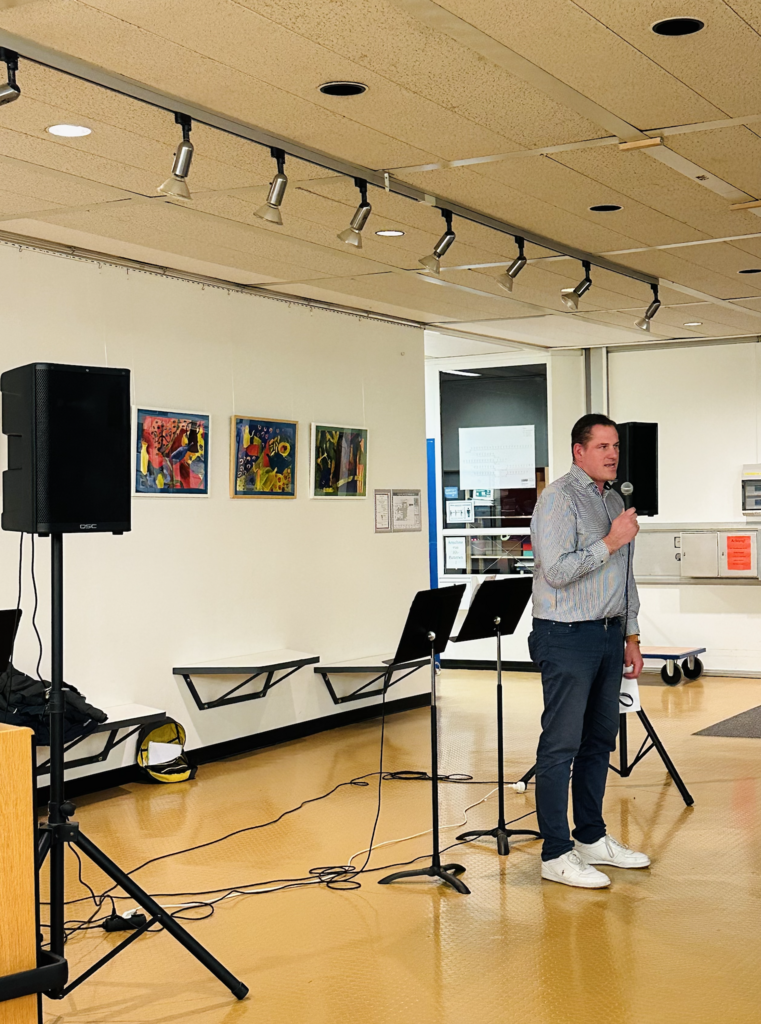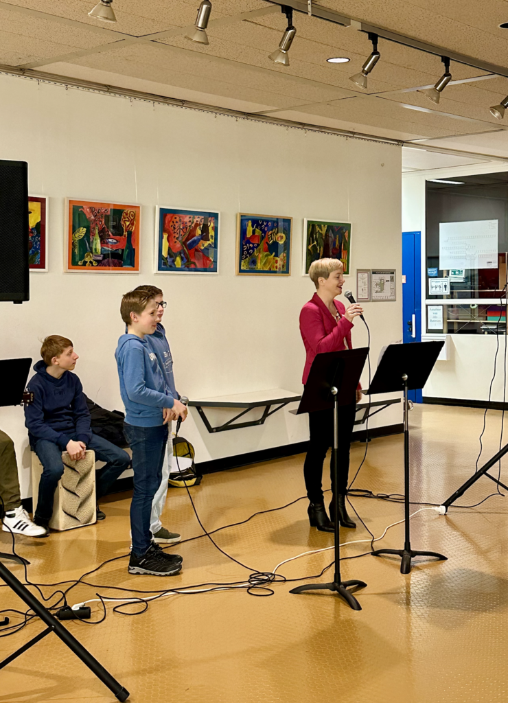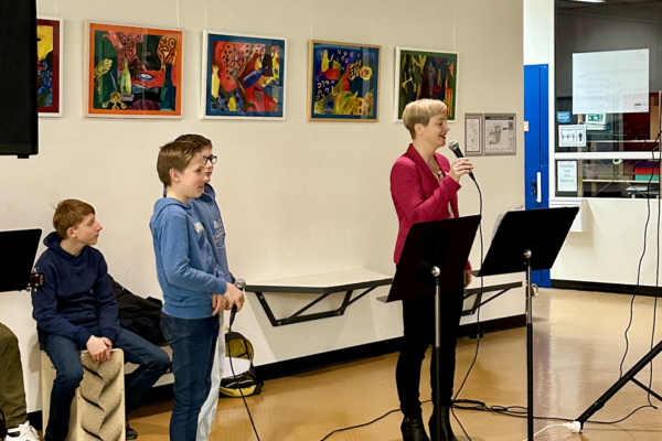 Frau Ferrari betonte in ihrer Ansprache, wie wichtig es gerade im Jahr 2025 sei, dass Schule die Institution ist, die Schülerinnen und Schülern Zugang zu Fakten verschafft. Im Zeitalter von Fake-News komme der Schule nicht nur die Aufgabe zu, ihren Schülern Methoden mit auf den Weg zu geben, mit der Masse an Informationen umzugehen und diese zu beurteilen, sondern auch die Aufgabe, ihnen zu zeigen, wie sie Fake News erkennen können. Auch die Bereitschaft, sich auf Fakten einzulassen, wenn sie nicht in das eigene Weltbild passen, sei eine Haltung, die immer stärker eingeübt werden müsse. Vor diesem Hintergrund betonte sie die Bedeutung des Neujahrsempfangs als Ort der Kommunikation auf Augenhöhe zwischen den Eltern und Lehrkräften als Grundlage für eine gute Zusammenarbeit und einen offenen Dialog.