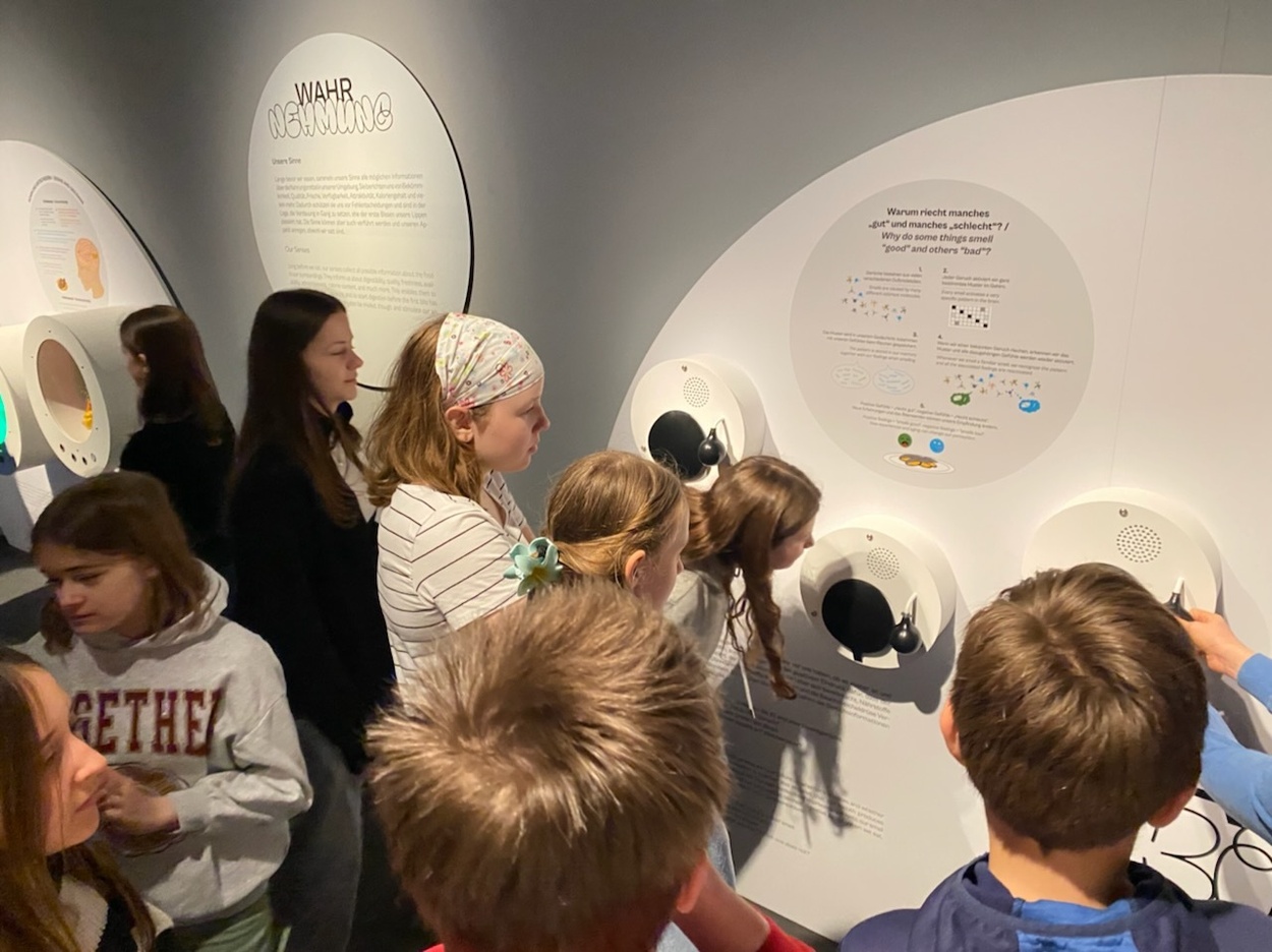 Im Rahmen des Biologieunterrichts zum Thema „Ernährung und Verdauung“ unternahm die Klasse 7a einen spannenden Ausflug zur interaktiven Ausstellung „Essen und Trinken. Reisen durch Körper und Zeit“ in den Reiss-Engelhorn-Museen. Diese bot den Schüler*innen die Möglichkeit, den gesamten Verdauungsprozess hautnah nachzuvollziehen – vom ersten Bissen bis zur Ausscheidung.