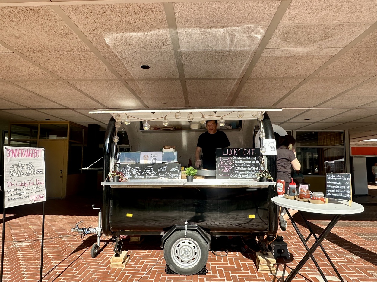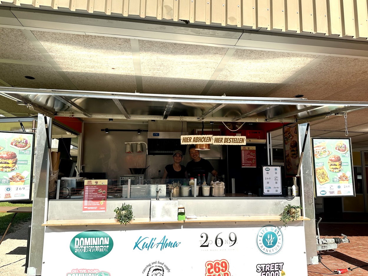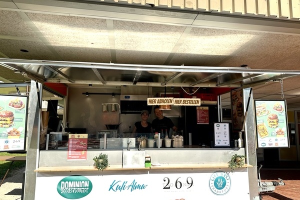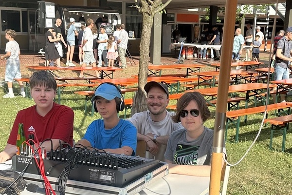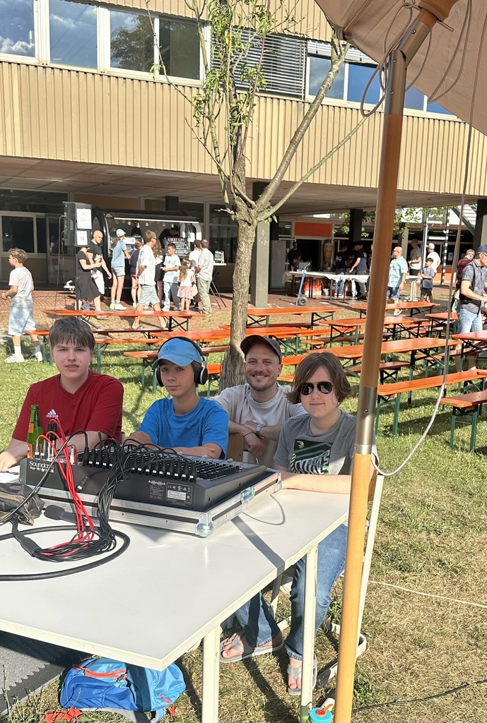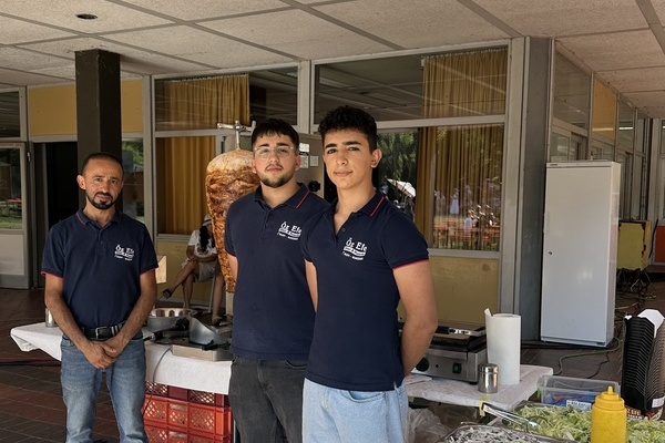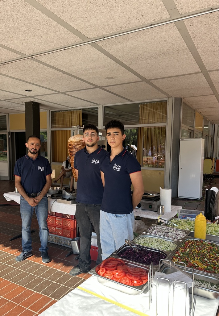 Kulinarisch blieb kaum ein Wunsch offen: Drei Foodtrucks boten eine breite Auswahl – von asiatischen Gerichten über Döner bis hin zu veganen Speisen. Für die passende Erfrischung sorgte ein Eiswagen, der bei diesen Temperaturen durchgehend gut besucht war. Getreu dem Motto „Alle für einen“ organisierten die Elternvertreter Kuchenspenden aus allen Klassenstufen für die J1 und wurden bei der Ausgabe von der Stufe 10 unterstützt – ein herzlicher Dank geht an alle Klassen für die tollen Muffins und Kuchen!