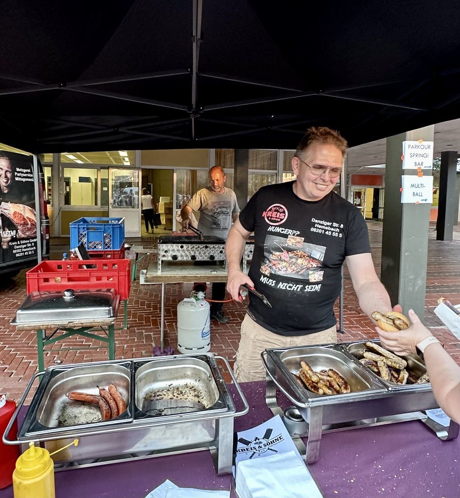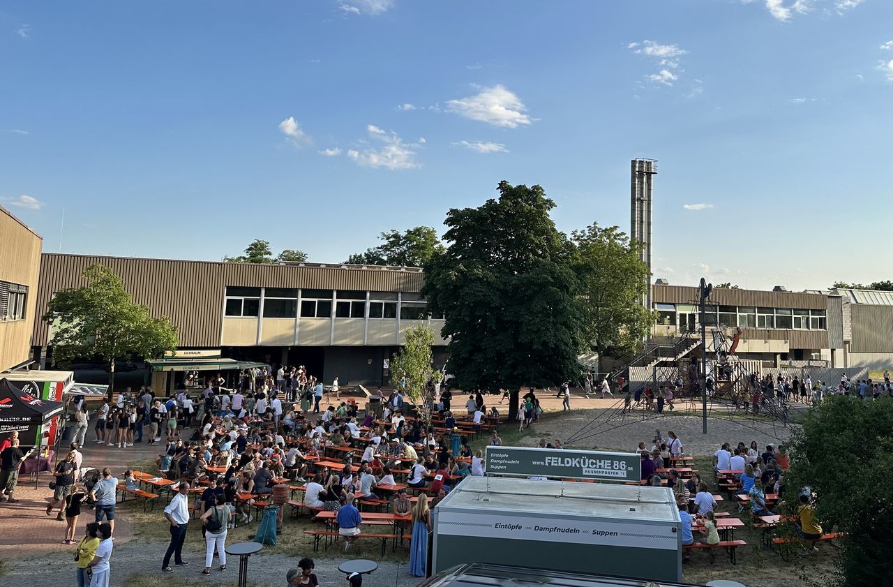 Für das leibliche Wohl sorgten regionale Anbieter, wie die Metzgerei Kreis&Söhne, ein Pizzawagen, die Feldküche86 mit Dampfnudeln und das Café Ciao mit Eisbus. Für Getränke sorgen die Schüler*innen der Kursstufe. Die Schülerband begleitet das Fest musikalisch.