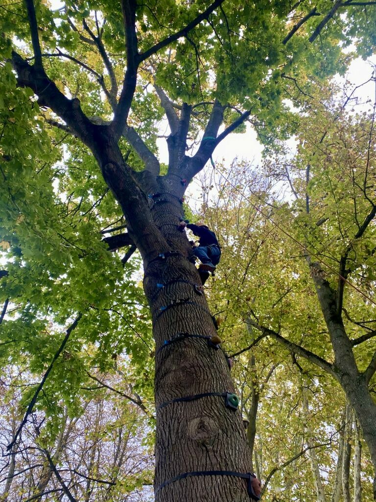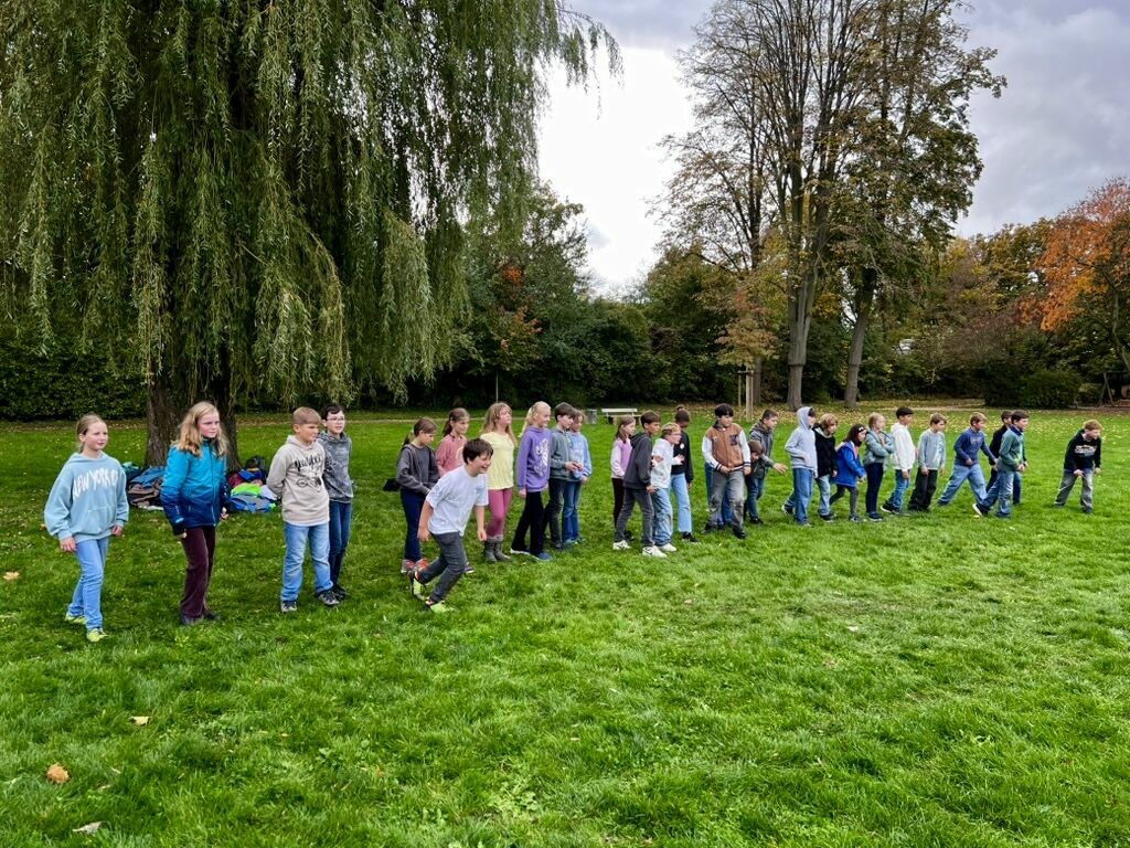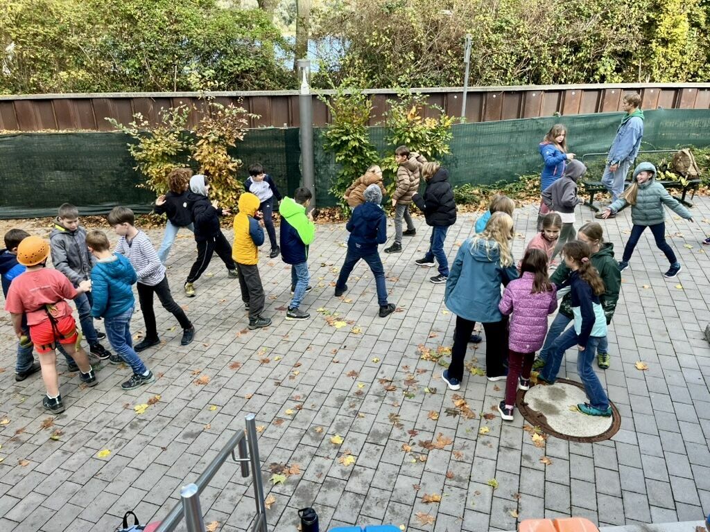 Unter der Leitung von Teamleiterin Ronja erwartete die Klasse ein tolles Programm, wie zum Beispiel Klettern. Gesichert mit Klettergurt und Helm wagten sich die Kinder Stück für Stück einen Baum hinauf. Durch die ermutigenden Worte von Ronja und der anderen Klassenmitglieder überwanden viele ihre anfängliche Scheu und kletterten ein Stück höher, als sie es sich zunächst zugetraut hatten. Am Ende konnten alle stolz auf ihre Leistung sein. Einige schafften es sogar bis ganz nach oben.