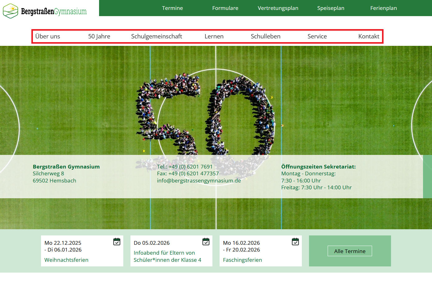 Das ist die Seite des Bergstraßen Gymnasium in Hemsbach.Die Seite wird auch Web · Seite genannt.
